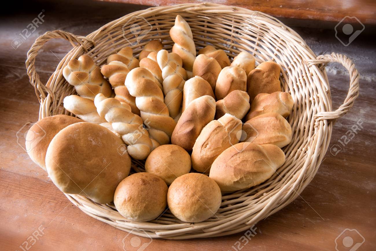 Wicker Basket Filled With Freshly Baked Bread Loves Buns And