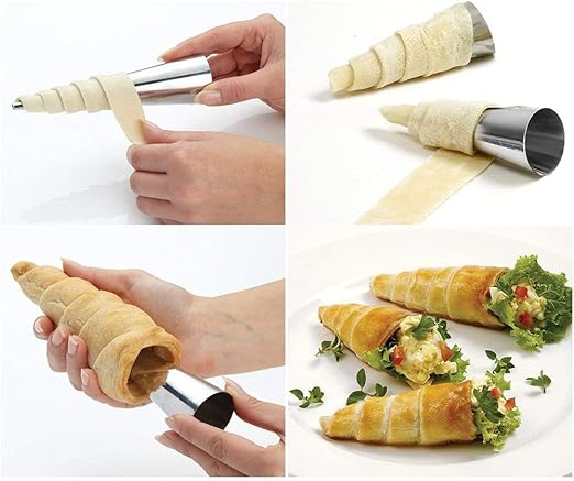 5pc Cream Mold Stainless Steel Baking Cone Spiral Baked Croissant