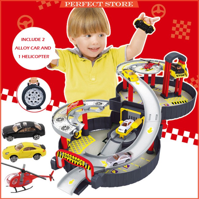 Spiral Roller Rail Alloy Kids City Tire Parking Garage Toy Car