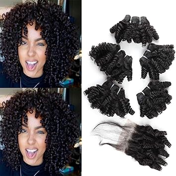 Amazon Com Funmi Curly Human Hair 5 Bundles With 4x4closure 100