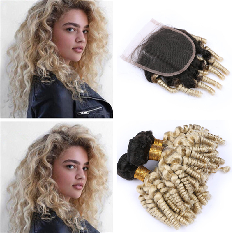Kaibeilu Brazilian Funmi Curly Human Hair Bundles With Closure