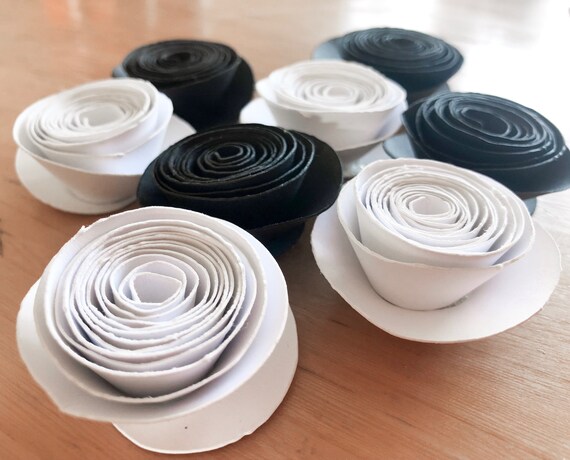 12 Rosette Paper Flowers Rolled Paper Rose Small White Etsy