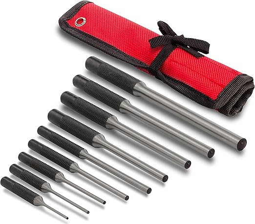Ram Pro Roll Pin Punch Set With Storage Pouch 9 Piece Steel